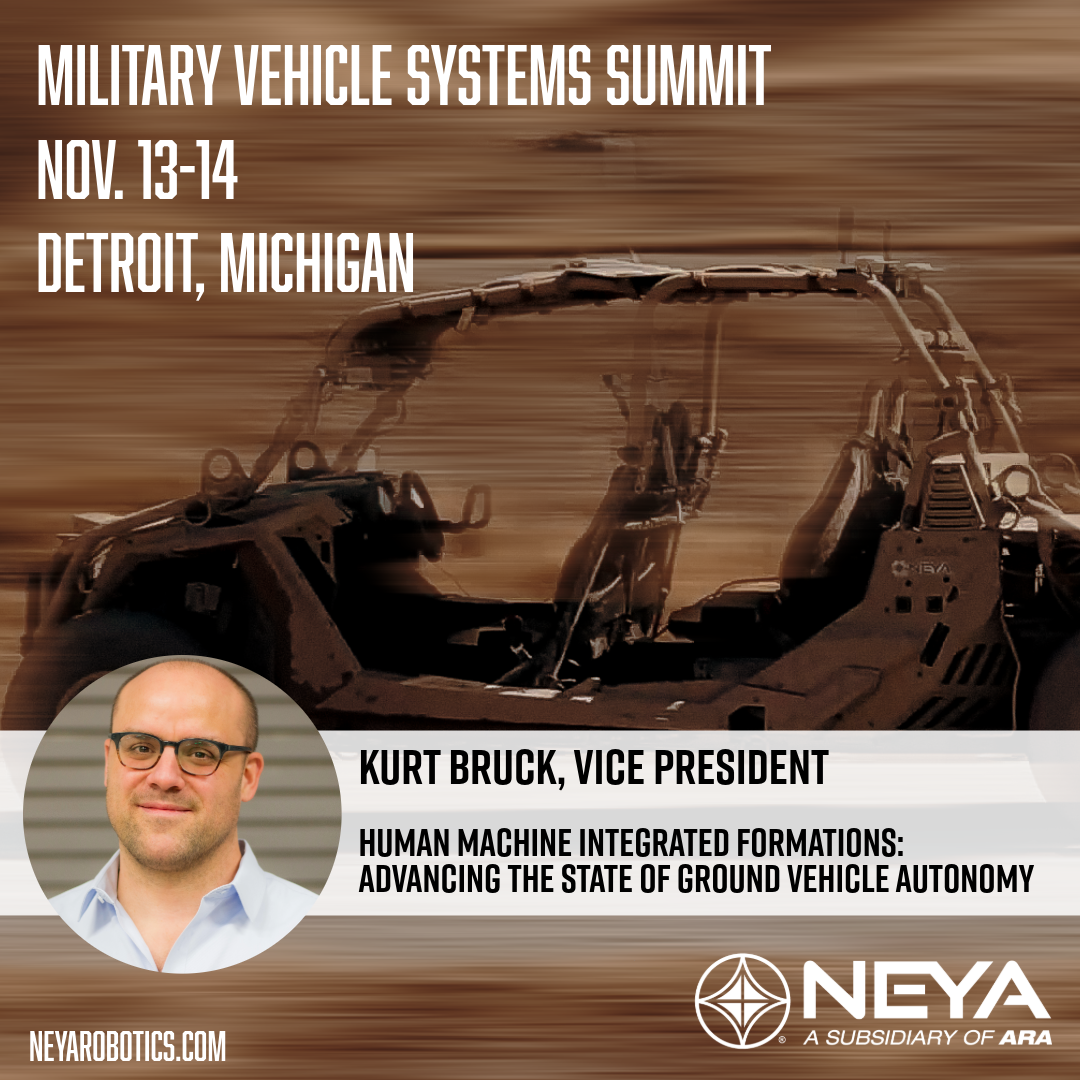Human-Machine Integrated Formations are transforming the way ground forces fight and win. At the Military Vehicle Systems Summit in Detroit, Neya Vice President Kurt Bruck will discuss how HMIF is advancing the state of ground vehicle autonomy, delivering the speed, precision, and resilience modern operations demand. Kurt’s presentation will take place at 11 a.m. on Nov. 14.